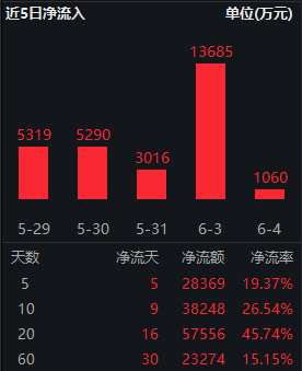 Wind数据显示,2024年6月5日,A50ETF华宝(159596)全天成交额1.62亿元,截至收盘,该基金最新规模18.01亿元,最新份额13亿份。截至6月5日,A50ETF华宝(159596)昨日(6月4日)再获1060万元资金净流入。最新数据显示,A50ETF华宝(159596)已连续8个交易日获资金净申购。拉长时间来看,A50ETF华宝(159596)近5日累计“吸金”2.84亿元!近10日资金净流入合计超3.82亿元,近20日资金净流入合计5.76亿元,净流入率达45.74%。最新规模达到了18.01亿元。
